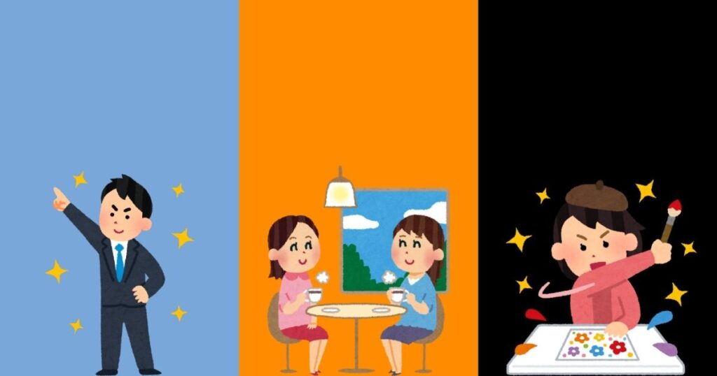 印象    情熱的、賑やか、親しみやすい 落ち着いている、理性的、信頼できそう