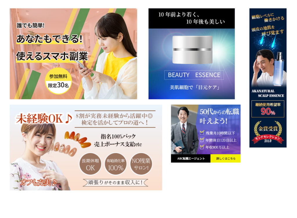 広告バナー、Amazonら楽天などの商品バナー、ブログアイキャッチ、YouTubeサムネイルなど、さまざまな目的のWeb画像を低価格でご提供いたします。
