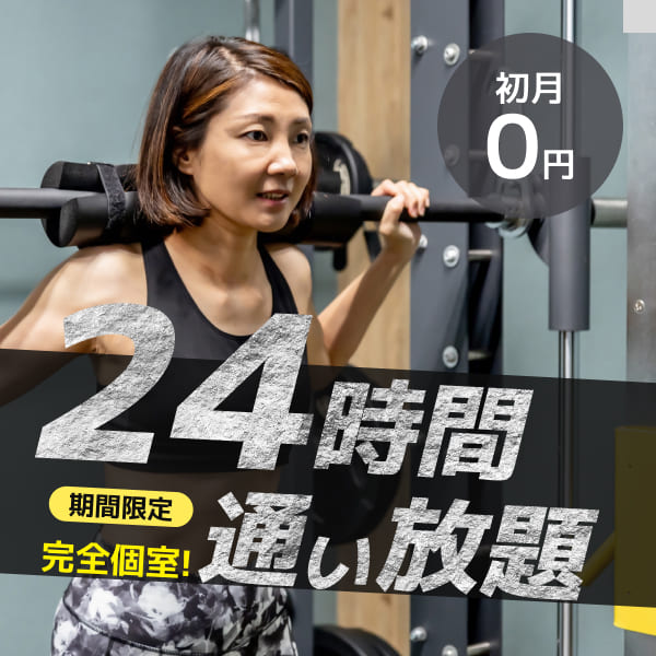 「24時間通い放題」「初月0円」という強い訴求ワードを中心に、瞬時に内容が伝わる構成と配色を意識しました。