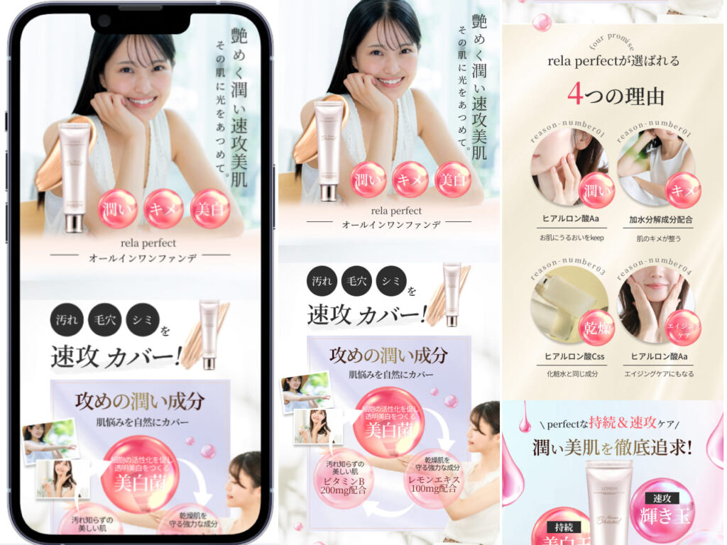 - 「美白」「保湿」「速攻カバー」を視覚的に伝えるコピー設計