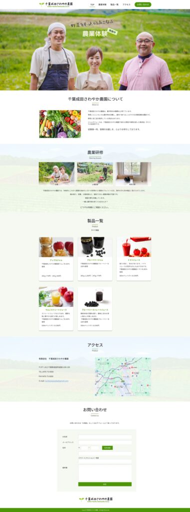 農業体験や製品紹介、アクセス情報などを整理し、訪問者が安心して利用できる構成を目指しました。